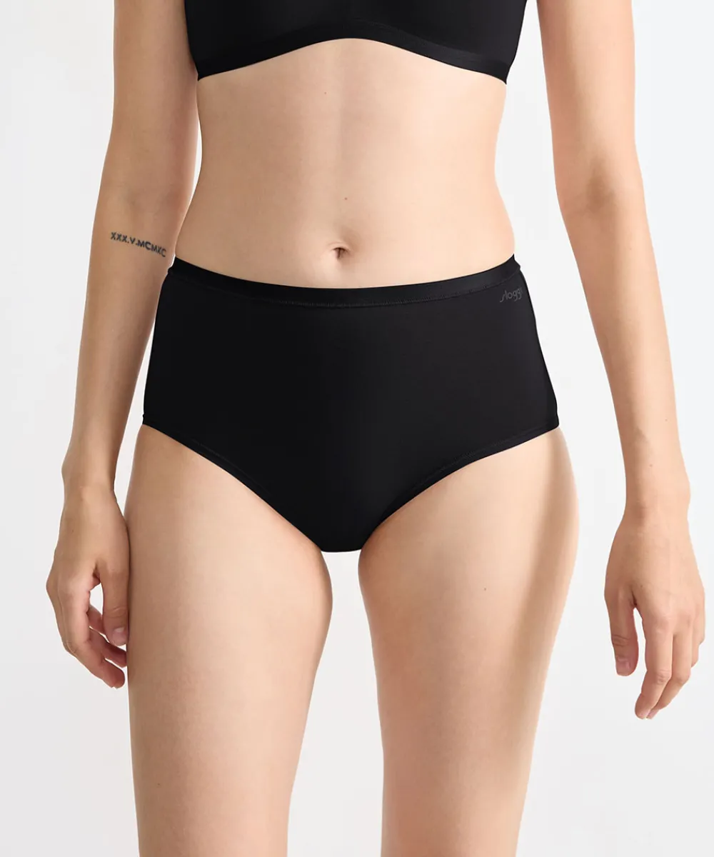 3-pak højtaljet taitrusse fra Sloggi med høj linning og lav benudskæring. Trussen har ekstra bløde og flade trussekanter, der ikke ses under kropsnært tøj. Trussen er lavt i ekstra blødt og komfortabelt materiale med højt indhold af bomuld. Materiale: 95% bomuld, 5% elastan