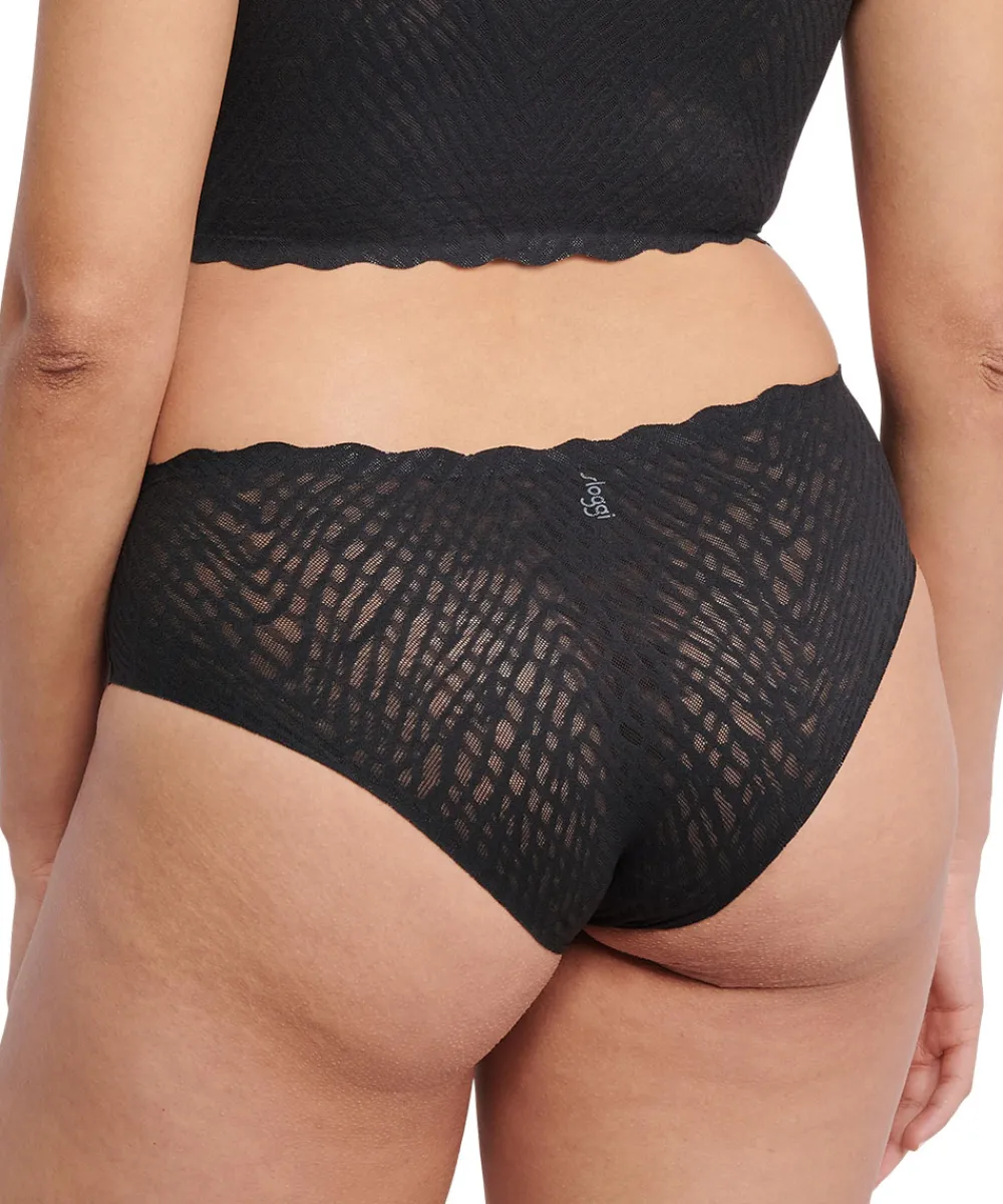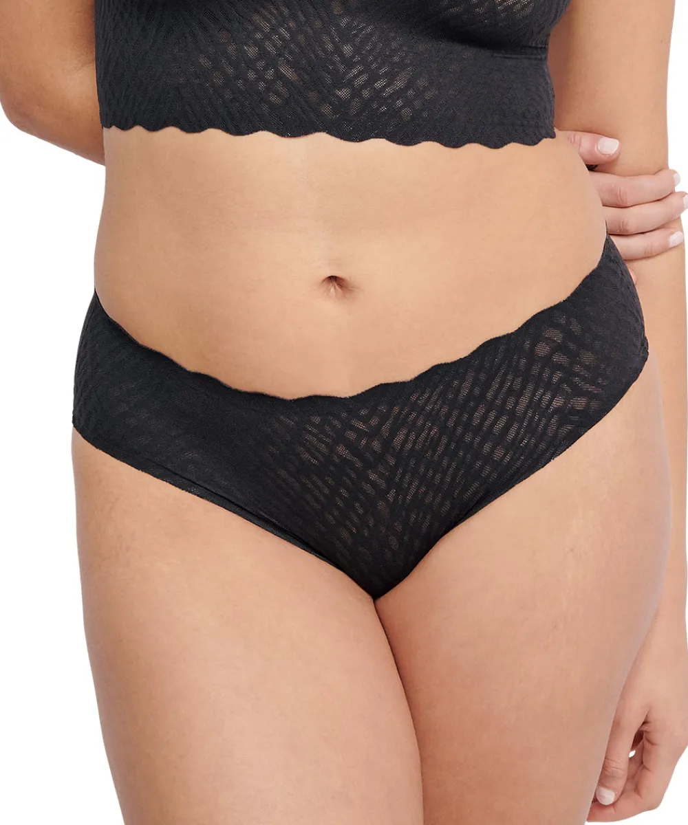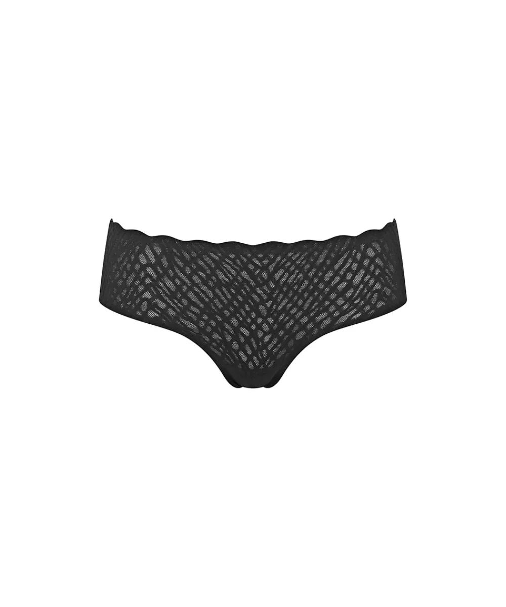 Lækre hipstertrusser fra Sloggi Zero Feel Bliss. De nye Zero Feel Bliss hipster-briefs giver sømfri, usynlig komfort i en moderne silhuet i romantiske, 360° strækbare blonder. Trusserne har fritskårne kanter som gør dem helt usynlige under tøjet. Hipstertrussen går lidt op på balden og tegner et vandret snit mens shortsene dækker hele balden. Materiale: 76% polyamid, 24% elastan