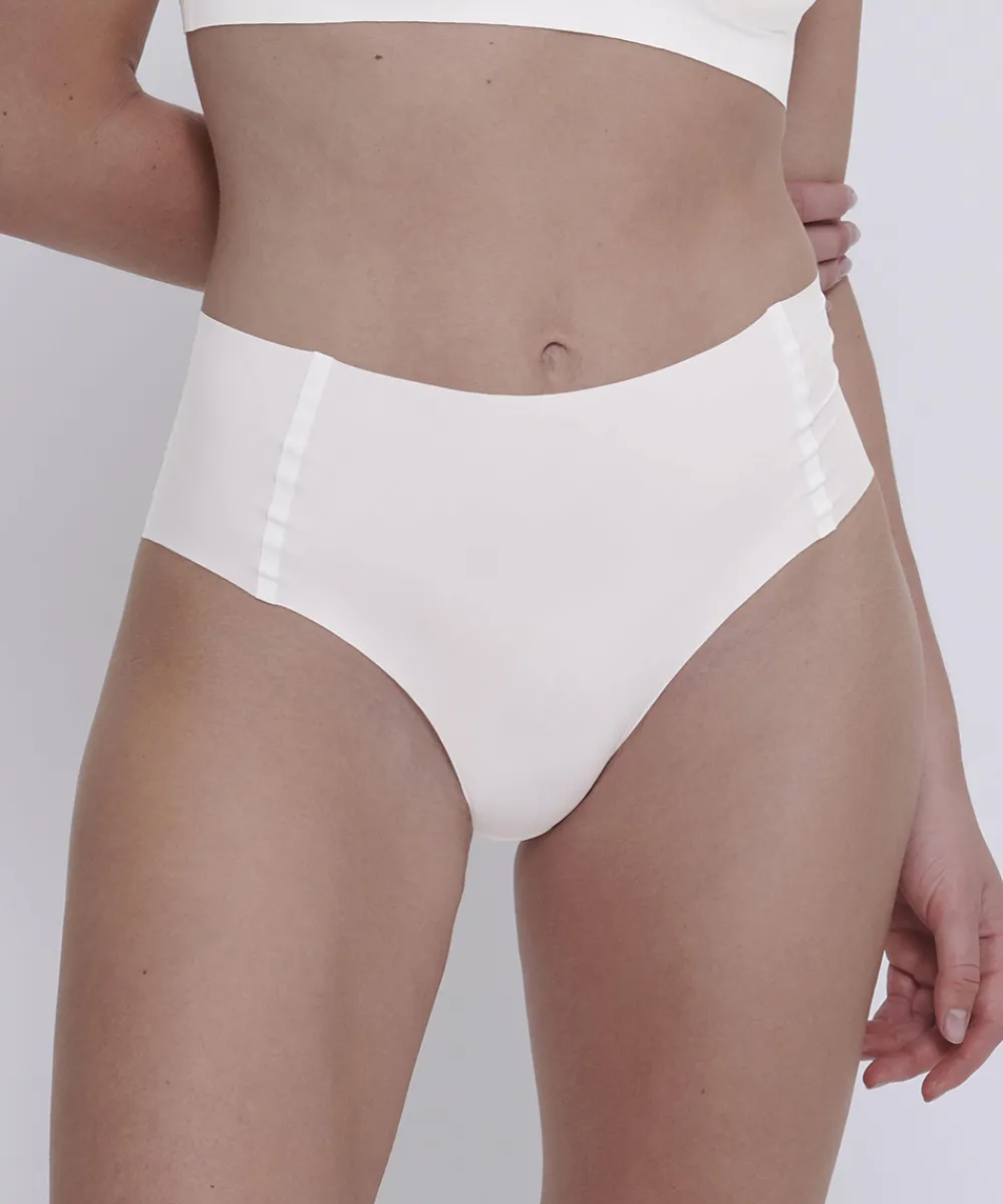 Højtaljede trusser fra Sloggi ZERO Feel. Disse nye ZERO Feel-trusser med høj talje giver sømfri, usynlig komfort i en moderne silhuet og nyt, superfint GRS-certificeret genbrugsmikrofiber. Trusserne har fritskårne kanter og innovativ punktlimning gør dem helt usynlige under tøjet. Materiale: 76% polyamid, 24% elastan