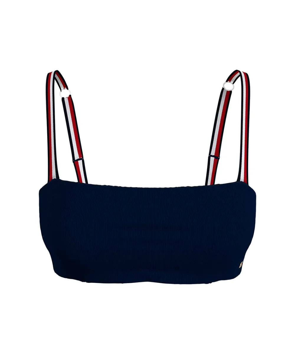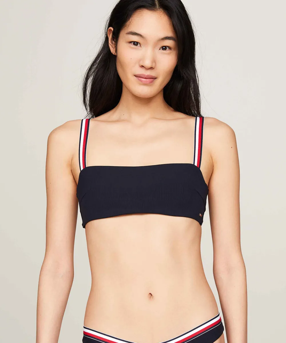 Tommy Hilfiger bandeau bikinitop med logo stropper. Badetøj skal gerne sidde stramt, da det udvider sig ved brug. Husk altid at skylle badetøjet op i koldt vand efter brug. Materiale: genanvendt nylon / polyamid 75%, elastan 25%