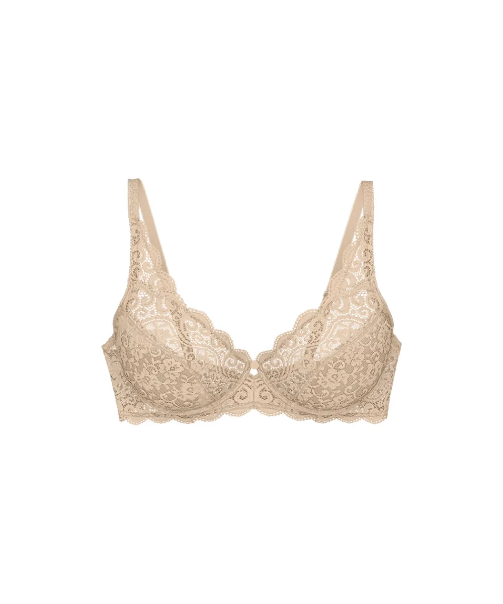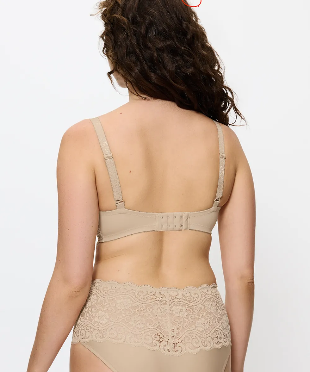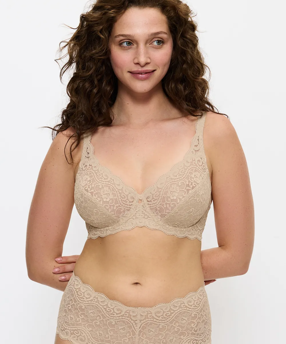 Velsiddende fuldsskålsbh fra Triumphs Classics Amourette serie til enhver kvinde. Bh’en er uden polstring med formende bøjler, der giver maksimal bevægelsesfrihed. Ekstra support i skålen og i siden for optimal støtte. Denne model er god til en større barm. Fuldskålsbh dækker det meste af brystet og giver dermed et godt hold til barmen. Stropperne er placeret godt oppe på skuldrene og danner ofte et U på ryggen, så de ikke så let glider ned og så de samtidig giver et bedre hold. Bh’ens sider og rygstykke er ekstra forstærket for at give en bedre støtte til barmen. Fuldskålsbh’en er særlig god til kvinder med en større barm eller til dig, som, uanset størrelse, gerne vil have den optimale støtte og hold fra din bh. Materiale: 62% polyamid, 24% elastan, 8% lyocell, 6% polyester
