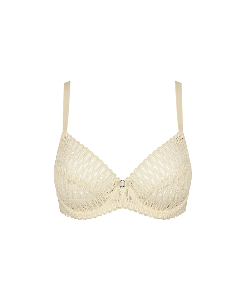 Fin trekvartskåls bh med den perfekte kombination af sensualitet og funktionalitet. Denne bøjle-bh skaber naturlig kavalergang og giver ekstra støtte til fyldigere skålstørrelser. Bh’en er ikke-polstret med formende bøjle, mønstrede blondeskåle i innovativt tredelt skåldesign. Fuldskålsbh’en dækker det meste af brystet og giver dermed et godt hold til barmen. Stropperne er placeret godt oppe på skuldrene og danner ofte et U på ryggen, så de ikke så let glider ned og så de samtidig giver et bedre hold. Bh’ens sider og rygstykke er ekstra forstærket for at give en bedre støtte til barmen. Fuldskålsbh’en er særlig god til kvinder med en større barm eller til dig, som, uanset størrelse, gerne vil have den optimale støtte og hold fra din bh. Materiale: 81% polyamid, 14% elastan, 5% polyester.
