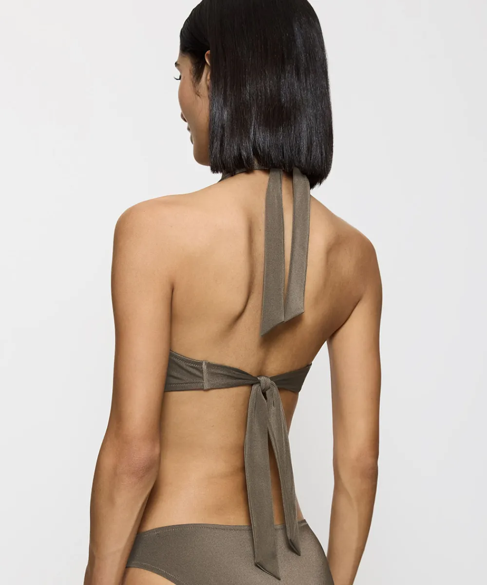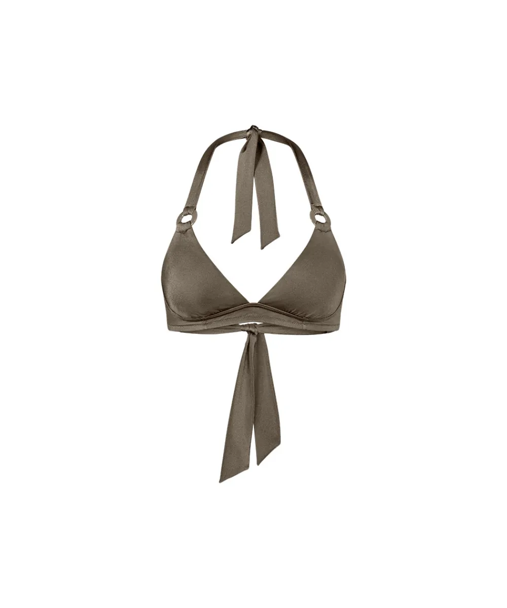 Feminin bikinioverdel med dyb udskæring fra Triumph. Bikinitoppen er designet med justerbare, brede stropper med høj komfort, der giver den perfekte støtte, selv i større størrelser. Badetøj skal gerne sidde stramt, da det udvider sig ved brug. Husk altid at skylle badetøjet op i koldt vand efter brug. Materiale: 82% polyamid, 18% elastan