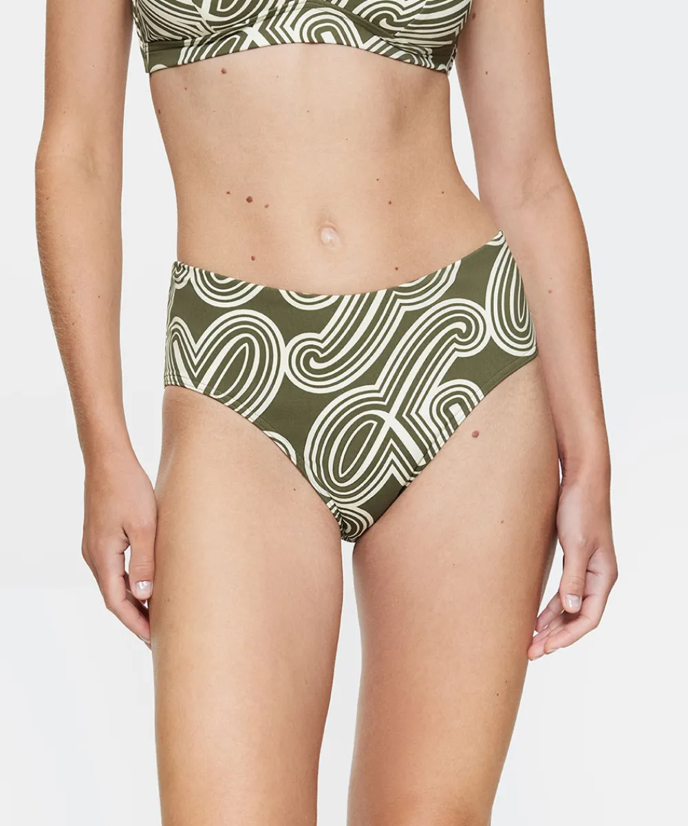 Højtaljede bikinitrusser fra Triumph. Bikinirusserne er designet med et livligt print. Stretchstof, der tilpasser sig og belønner din krop med større bevægelsesfrihed. Curved design med høj dækning, der former din krop og viser din bedste silhuet. Badetøj skal gerne sidde stramt, da det udvider sig ved brug. Husk altid at skylle badetøjet op i koldt vand efter brug. Materiale: 69% polyamid, 31% elastan