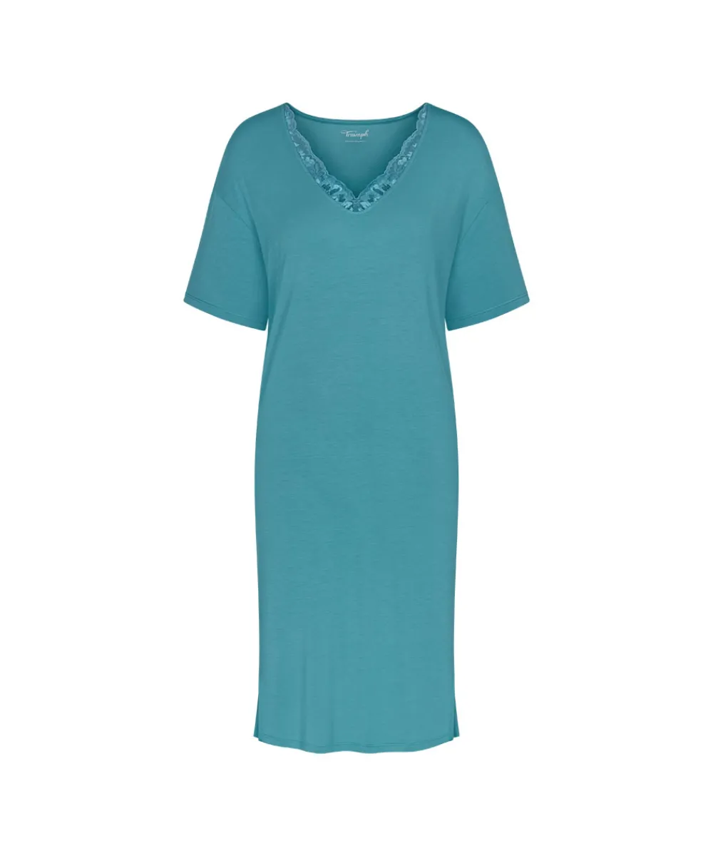 Skøn natkjole fra Triumph, som er fremstillet af 94% blød lyocell. Natkjolen er designet med korte ærmer og knælængde. Det bløde, elastiske materiale falder smukt og er let at vedligeholde. Dekorative blondeindsatse giver den perfekte balance mellem komfort og elegance. Materiale: 94% lyocell, 6% elastan