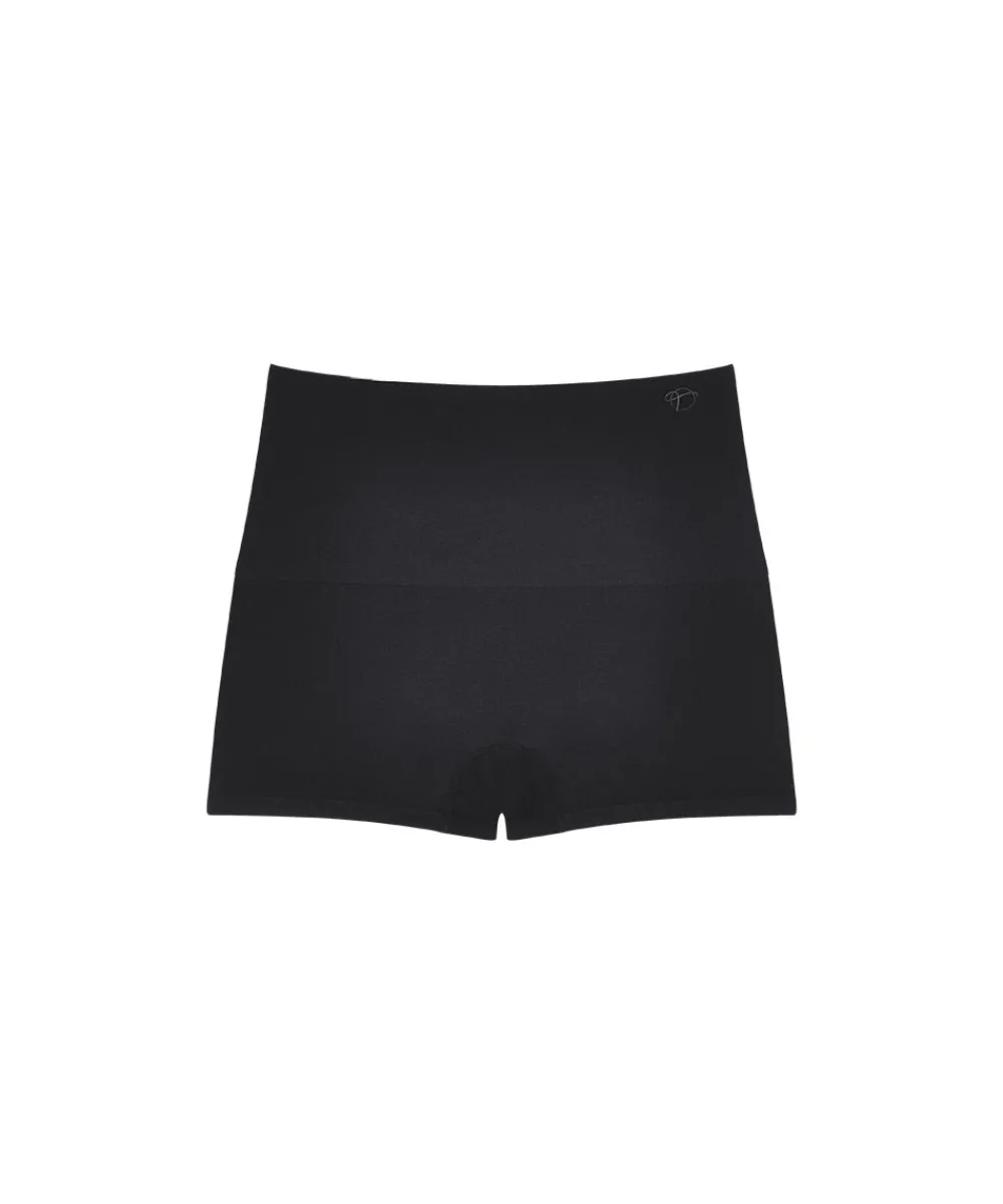 Shapewear shorts fra Triumph med korte ben. De sømløse og glatte bandeau shorts trussen giver maksimal dækning og usynlige kanter, og er delvist fremstillet af genanvendt polyamid. Den sømløse strikketeknik giver både komfort og en moderat støtte på maven. Materiale: 78% polyamid, 22% elastan