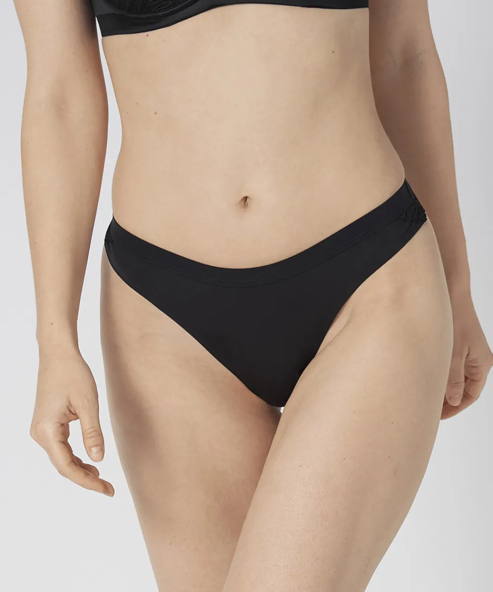 Fine stringtrusser med høje ben fra Triumphs Style Aura Spotlight-serie. Trusserne er hofteskårende med smalle sider med blonde-detaljer på siden. Trussen har flade kanter, så man ikke kan se den under tøjet. Trussen er lavet af mikrofiber for en behagelig pasform.