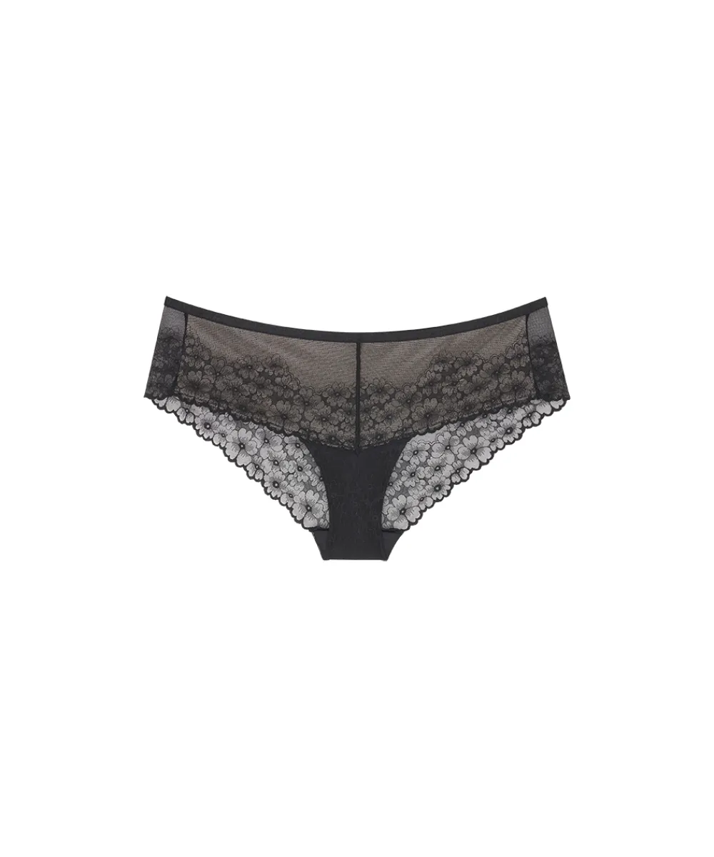 Skøn hipstertrusse fra Triumph i all-over blonde. Hipstertrussen giver en tydelig, feminin silhuet og et naturligt, smart look. Trussemodellerne hipster og shorts har en vandret benudskæring. Hipstertrussen går lidt op på balden og tegner et vandret snit mens shortsene dækker hele balden. Materiale: Materiale: 80% polyamid, 20% elastan.
