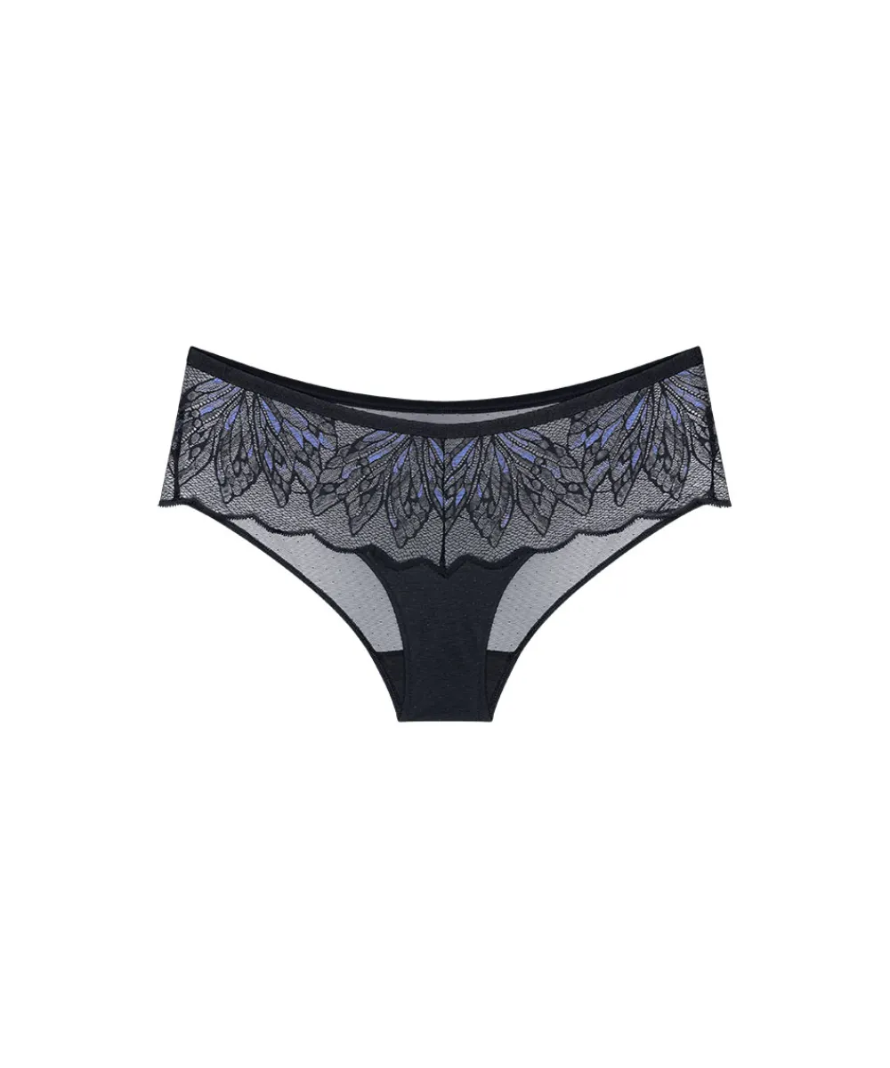 Skøn hipstertrusse fra Triumph i all-over blonde på fronten og blød mesh bagpå. Hipstertrussen giver en tydelig, feminin silhuet og et naturligt, smart look. Trussemodellerne hipster og shorts har en vandret benudskæring. Hipstertrussen går lidt op på balden og tegner et vandret snit mens shortsene dækker hele balden. Materiale: 75% polyamid, 25% elastan