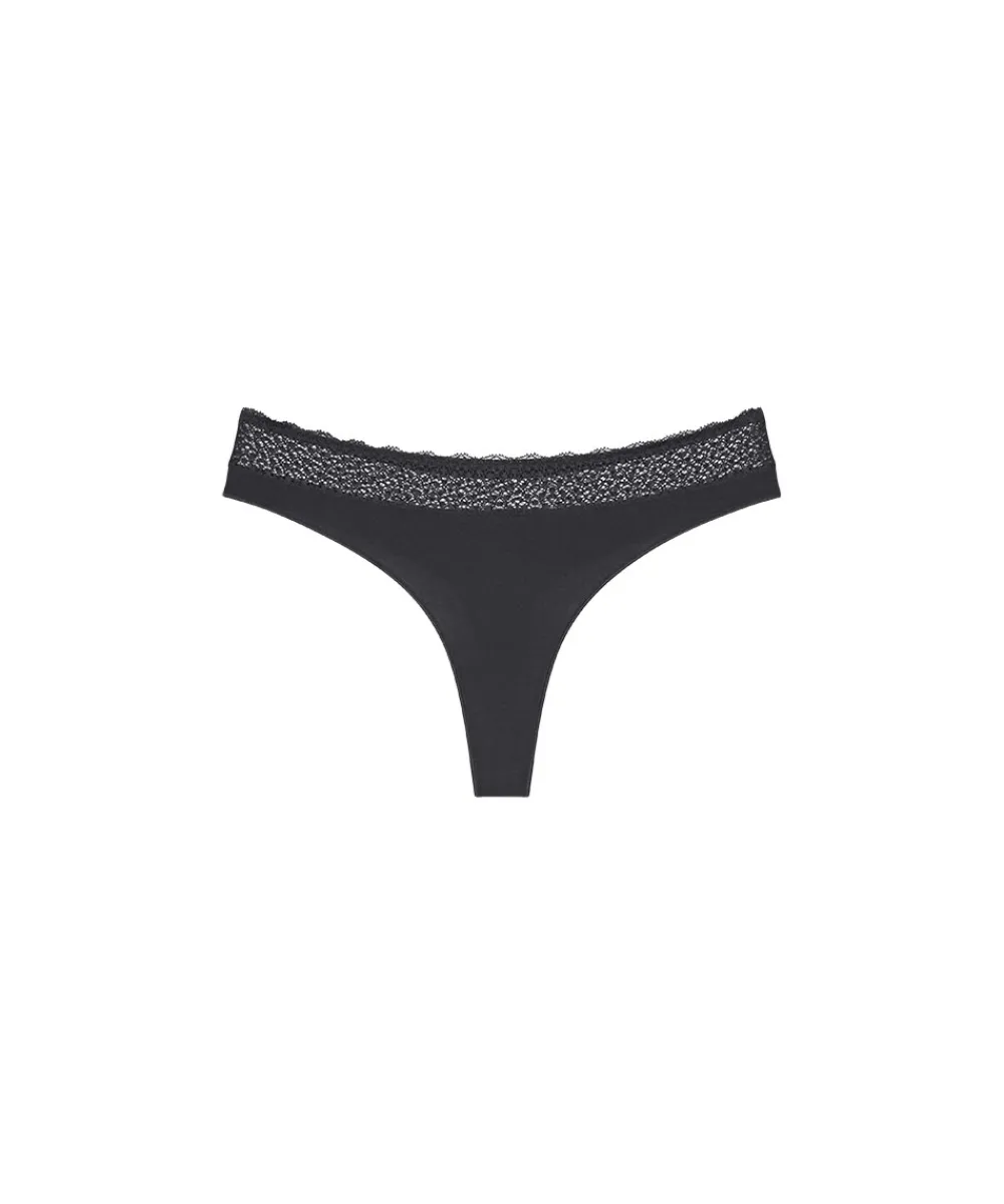 De mest behagelige og silkebløde stringtrusser fra Triumph. Trusserne er fremstillet af glat, bæredygtig Lenzing Modal stof, som pga. af dets bløde og beroligende egenskaber er super dejlig at have på. Trussens taljebåndet har blonder i kanten. String og tangatrusser er særligt velegnede under tætsiddende bukser, kjoler og nederdele, da bagstykket – en tynd streng mellem balderne – ikke efterlade synlige overgange under tøjet. Sting og tangatrusserne har en høj benudskæring og får derfor dine ben til at syne optisk længere. Materiale: 87% modal, 13% elastan