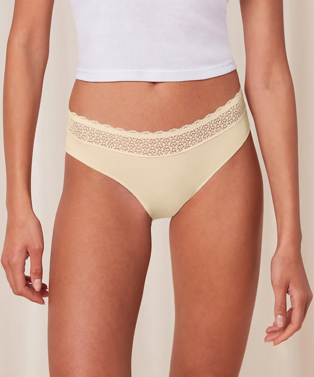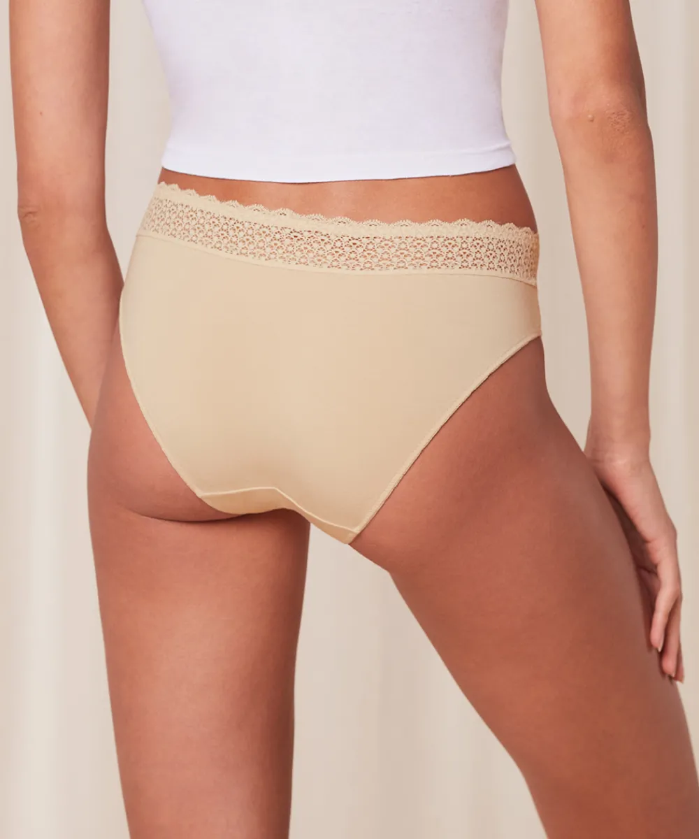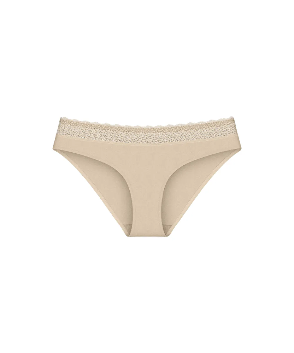 Behagelige og silkebløde taitrusse fra Triumph. Trussen er lavet i glat, bæredygtig Lenzing Modal stof, som er blødt og har beroligende egenskaber. Taitrussens taljebånd har blonder i kanten og er også genanvendt. Taitrussen er den bedstsolgte og mest almindelige trussetype. Taitrussen har som regel et skråt snit bagpå og dækker det meste af balderne. Et højt bensnit fortil og et smalt sidestykke får benene til at syne længere – altså er modellen god til dig, der gerne vil fremhæve ben og tilføre optisk længde. Materiale: 87% modal, 13% elastan
