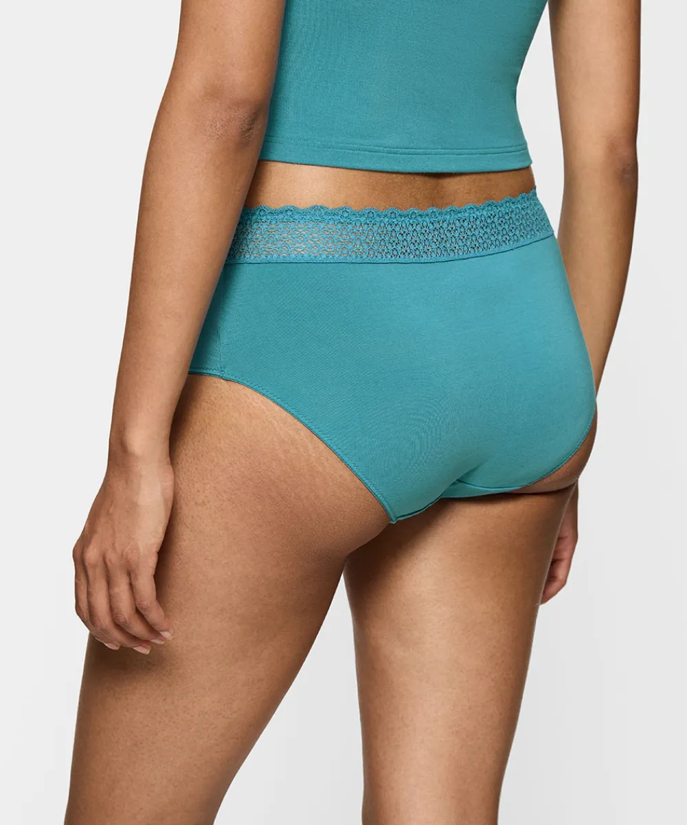 De mest behagelige og silkebløde midi trusser fra Triumph. Trusserne er fremstillet af glat, bæredygtig Lenzing Modal stof, som pga. af dets bløde og beroligende egenskaber er super dejlig at have på. Trussens talje bånd har blonder i kanten. Trussen har et skråt snit bagpå og dækker det meste af balderne. Materiale: 87% modal, 13% elastan