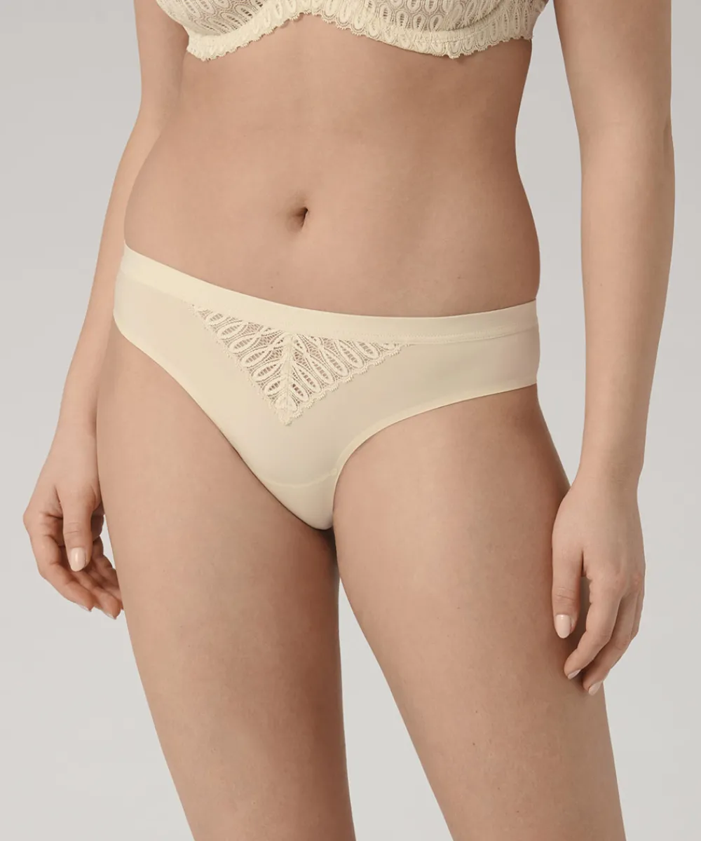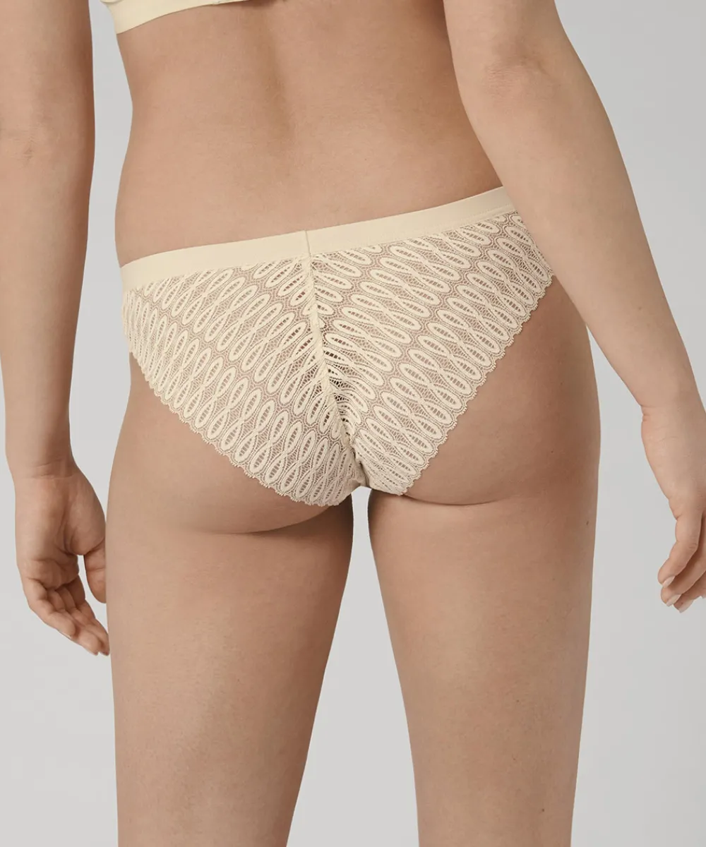 Sofistikerede og flirtende hipsterskåret trusse med halvt-dækkende rygsektion. Trussen er designet med mønstret blonde detalje, som gør den både behagelige og elegante. Trussen har fin strækbar linning til perfekt positionering og er usynlig under tætsiddende tøj. Materiale: 85% polyamid, 15% elastan.