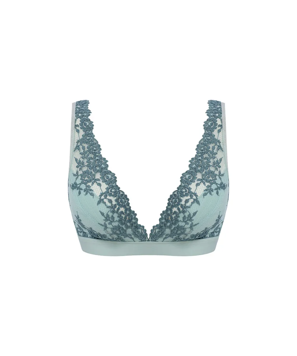 Skøn blonde trekantstop uden bøjle og uden vattering fra Wacoal. Trekantsbh’en er designet med v-formet skåle med en smuk blonde, som lægger sig pænt til barmen. Toppen er designet med et bredt bånd under skålene, for at give en god støtte. Bh’ens stropperne er justerbare og kan derfor krydses på ryggen. Materiale: 91% polyamid, 9% elastan
