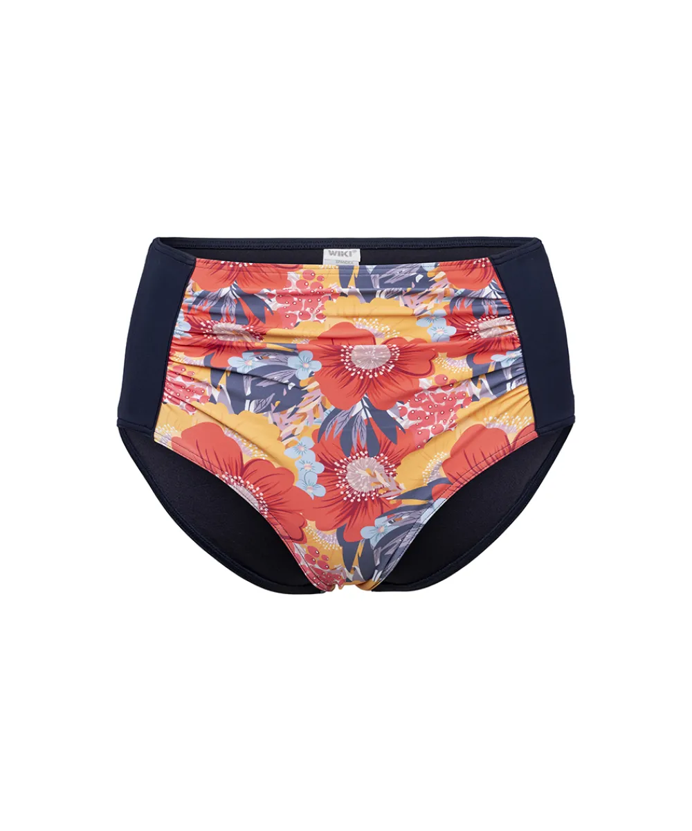 Bikiniunderdel, som er lavet i en klassisk taimodel med høj talje fra Wiki. Komfortabel og bred linning, som er designet med dekorative rynkedetaljer. Badetøj skal gerne sidde stramt, da det udvider sig ved brug. Husk altid at skylle badetøjet op i koldt vand efter brug. Materiale: 82% nylon, 18% HighClo elastan.