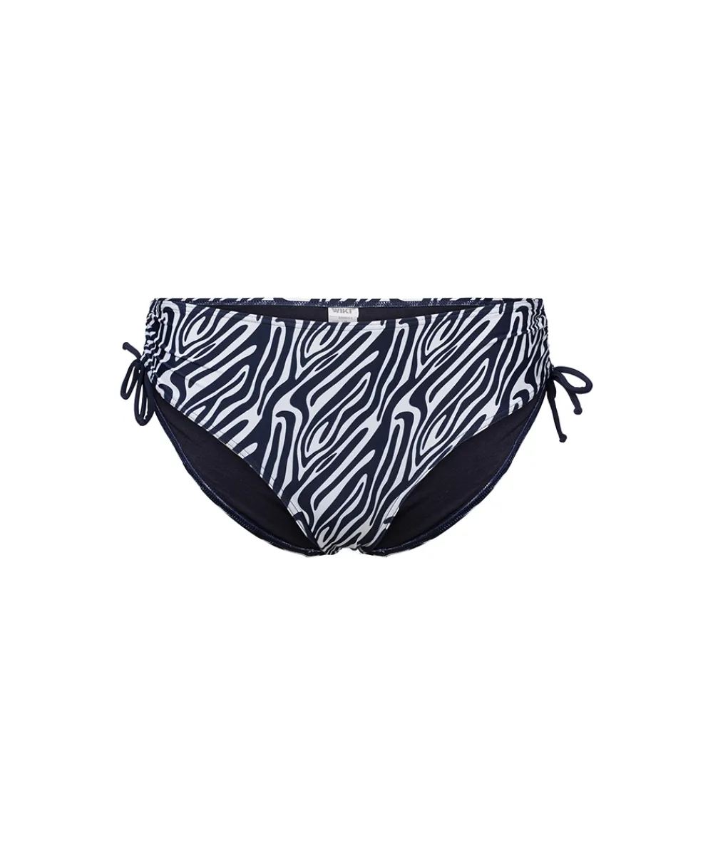 Bikinitrusse fra Wiki med snører i sidesømmene, der skaber en fin rynkeeffekt. Badetøj skal gerne sidde stramt, da det udvider sig ved brug. Husk altid at skylle badetøjet op i koldt vand efter brug. Materiale: 82% nylon, 18% HighClo elastan.