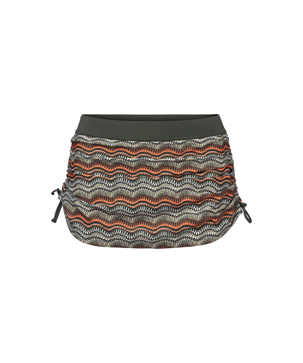 Trendy bikiniunderdel, som er lavet i en klassisk taimodel med skørt. Snørerne i siderne kan regulere højden på skørtet. Badetøj skal gerne sidde stramt, da det udvider sig ved brug. Husk altid at skylle badetøjet op i koldt vand efter brug. Materiale: 82% nylon, 18% HighClo elastan.