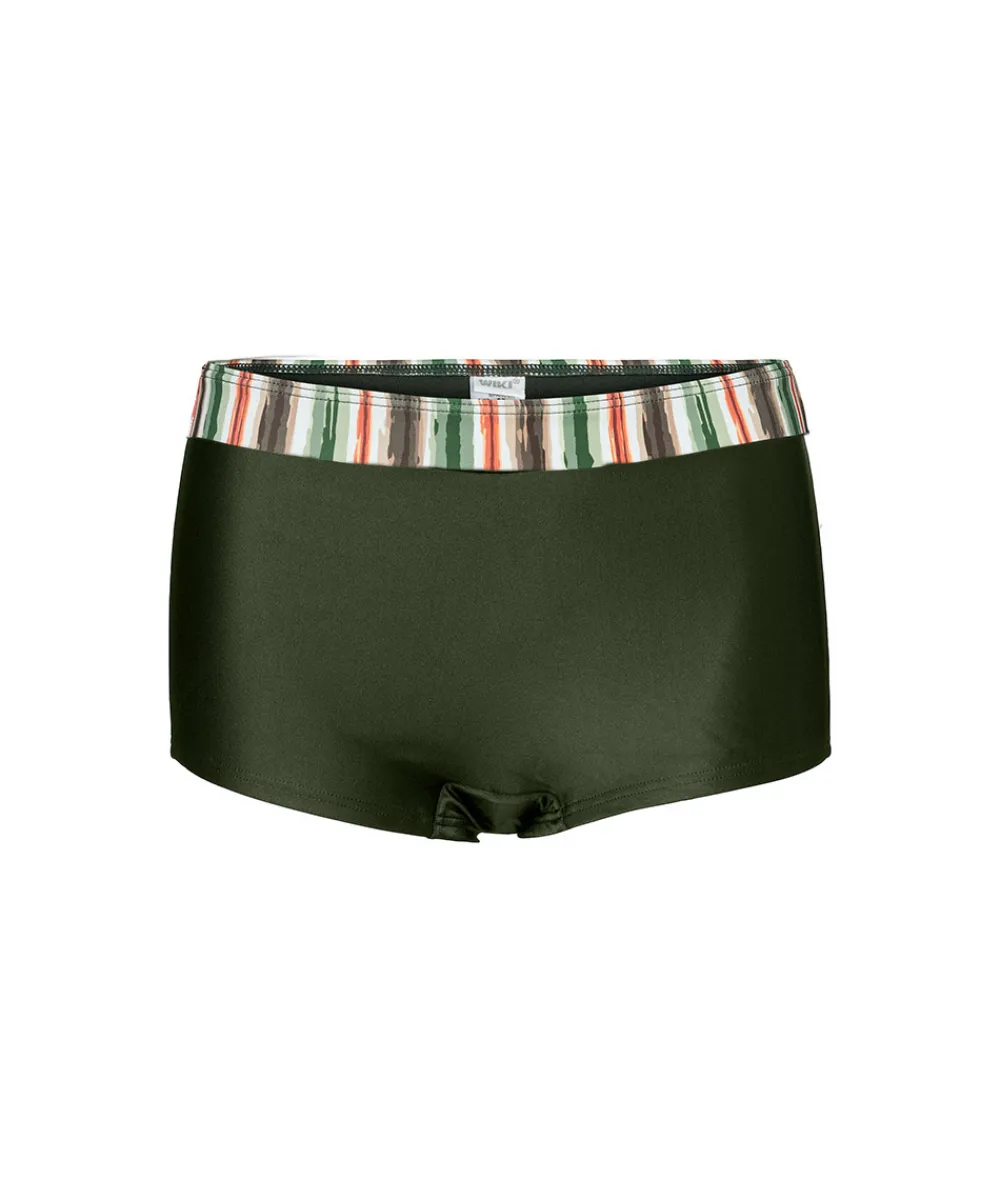 Bikiniunderdel fra Wiki, som er lavet i en shortsmodel med høj talje. Badetøj skal gerne sidde stramt, da det udvider sig ved brug. Husk altid at skylle badetøjet op i koldt vand efter brug. Materiale: 82% nylon, 18% HighClo elastan.