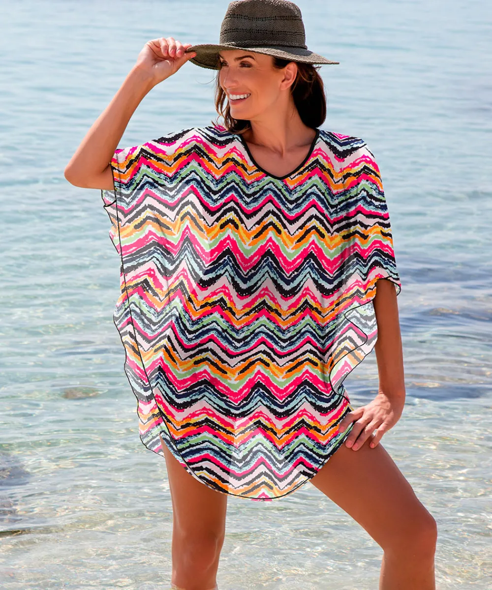 Strandkjole med dobbeltlags mesh fra Wiki. Brug strandkjolen / poncho over dit badetøj til stranden eller poolen. Materiale: 92% nylon, 8% elastan.