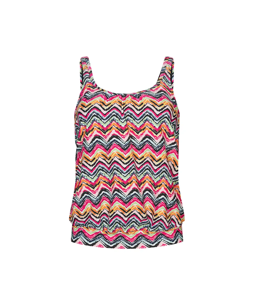 Tankini fra Wiki med indvendigt silikonelag for bedre pasform, upolstrede og bøjlefri skåle og indvendig elastik, som støtter barmen. Tankinien er lavet i hurtigtørrende materiale med stretchkomfort. Badetøj skal gerne sidde stramt, da det udvider sig ved brug. Husk altid at skylle badetøjet op i koldt vand efter brug. Materiale: 82% nylon, 18% HighClo elastan.