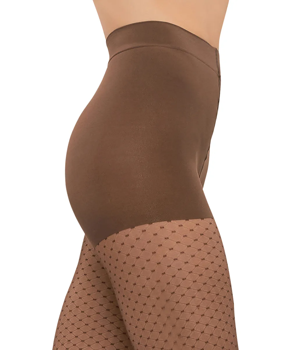 Smukke strømpebukser fra Wolford med shape-effekt. Strømpebukserne er lavet i rundstrik og prydset med et tidsløst mønster med et geonmetrisk rombedesign og prikker. Strømpebukserne er strikket i rundstrik og med en bred, blød linning, der sikrer komfort og en god pasform. Strømperne er 20 denier. Materiale: 81% polyamid, 17% elastan, 2% polyester.