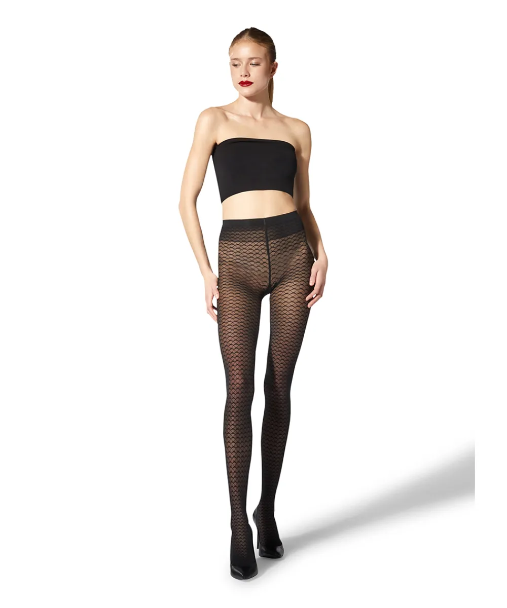 Smukke mønstrede strømpebukser i grafisk all-over netmønster. Strømpebuksen er mat på overfladen, transparent i 30 denier. Materiale: 91% polyamid, 9% elastan